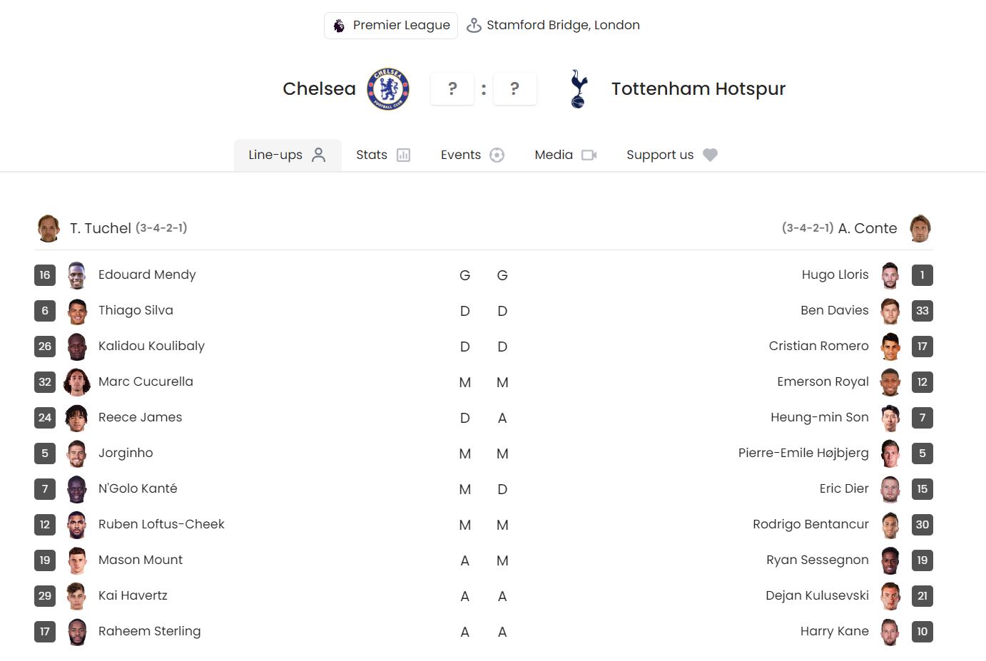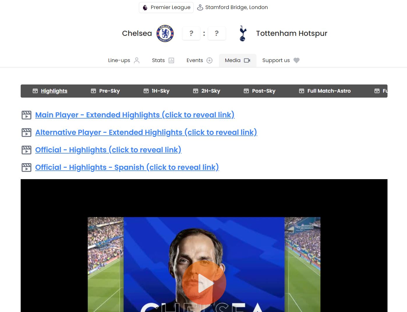 사이트에 들어가 좀 내려보면 오늘 새벽에 한 첼시 vs 토트넘경기가 있습니다.